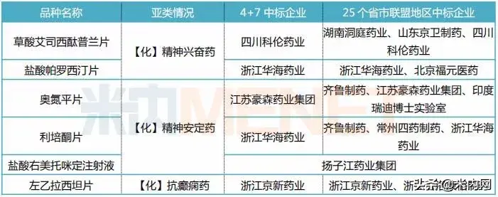 表4:第二批帶量採購涉及的神經系統葯物情況