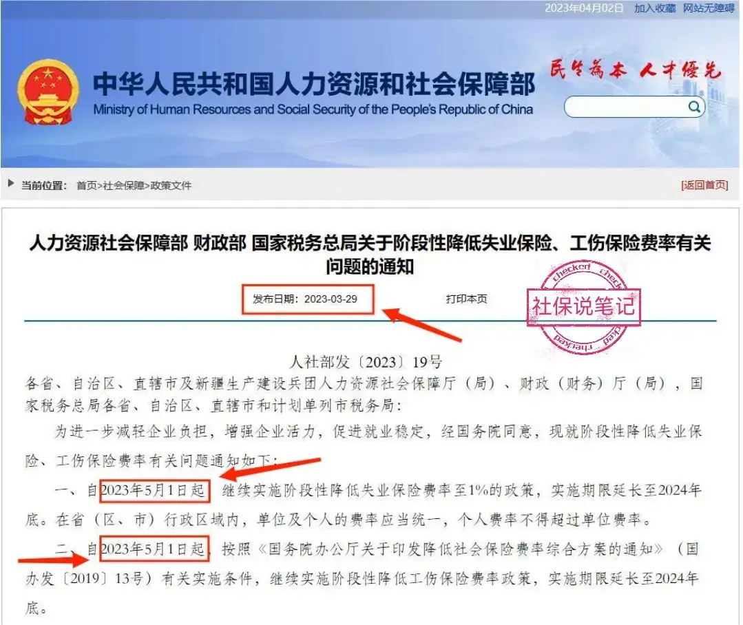 決定自2023年5月1日起,再次降低失業保險和工傷保險費率。
