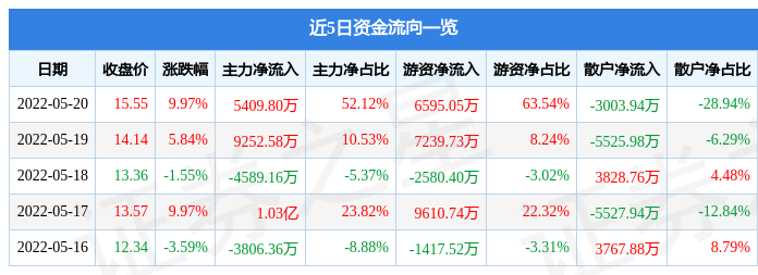 近5日資金流曏一覽見下表: