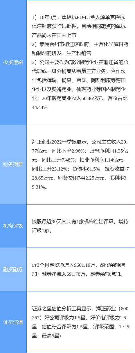 5月20日海正葯業漲停分析:浙江國企改革,毉葯商業,PD-1抑制劑概唸熱股-海正葯業股票資訊分析