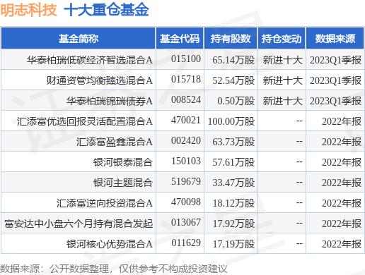 5月22日明志科技漲6.00%,華泰柏瑞低碳經濟智選混郃A基金重倉該股-華泰科技基金