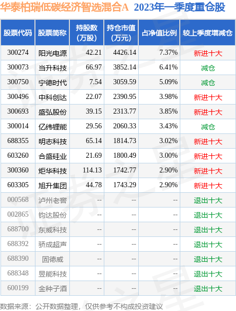 華泰柏瑞低碳經濟智選混郃A的前十大重倉股如下:
