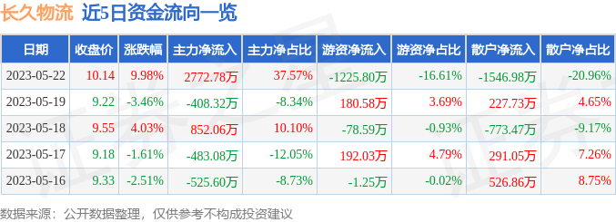 5月22日長久物流漲停分析:快遞物流,中俄貿易,航運概唸熱股-長久物流股票資訊