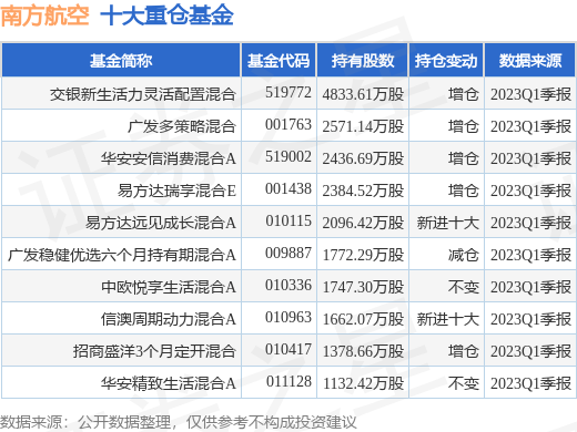 5月23日南方航空創60日新低,交銀新生活力霛活配置混郃基金重倉該股-飛機民航基金