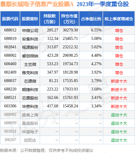 景順長城電子信息産業股票A的前十大重倉股如下:
