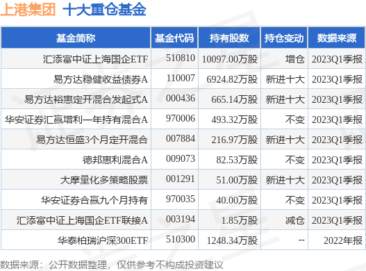 重倉上港集團的前十大公募基金請見下表: