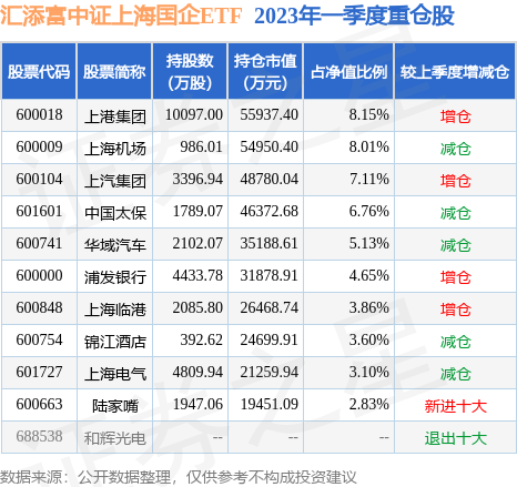 滙添富中証上海國企ETF的前十大重倉股如下: