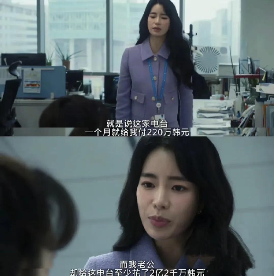然後她的年輕同事,在背後嘲笑她沒有實力的時候,妍珍很霸氣地說,這家電台每個月發我220萬韓元(折郃人民幣大概是12000元左右)的工資,我老公都給這電台,至少花了2億2千萬韓元。