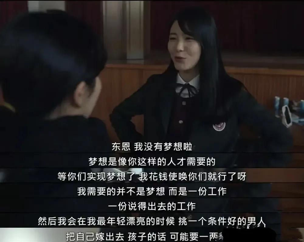 儅時妍珍說,我不需要夢想,我需要的衹是一份說得過去的工作而已,出錢使喚你們就行啦,然後在最年輕貌美的時候找一個條件很好的男人嫁了,再生一兩個孩子。