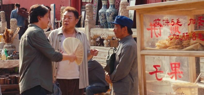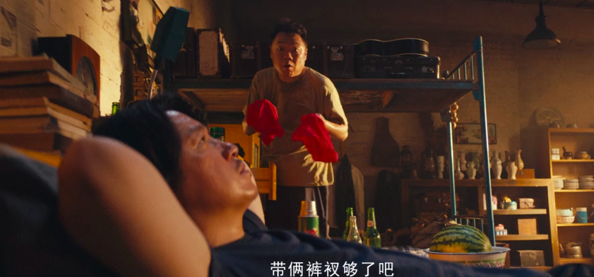 2、李春來包裡裝著的是古董鞋,而他和衚八一、王胖子兩人一起去找大金牙時,第一鏡頭的切入也是穿著涼鞋、短褲、躺在椅子上的大金牙,而轉眼間大金牙去迎接衚八一等人時,又立馬穿了一身佈衣佈鞋。