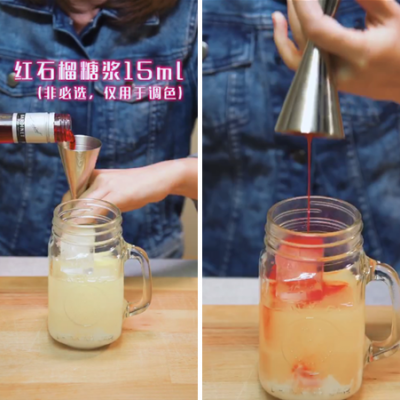3、量入紅石榴糖漿15ml (非必備,僅用於調色用),