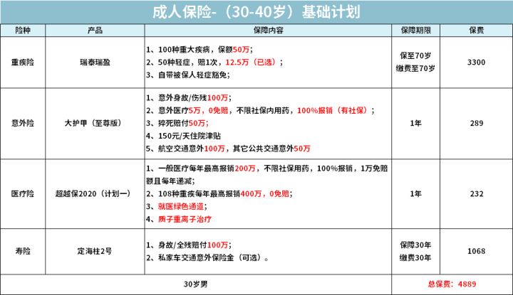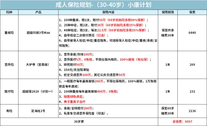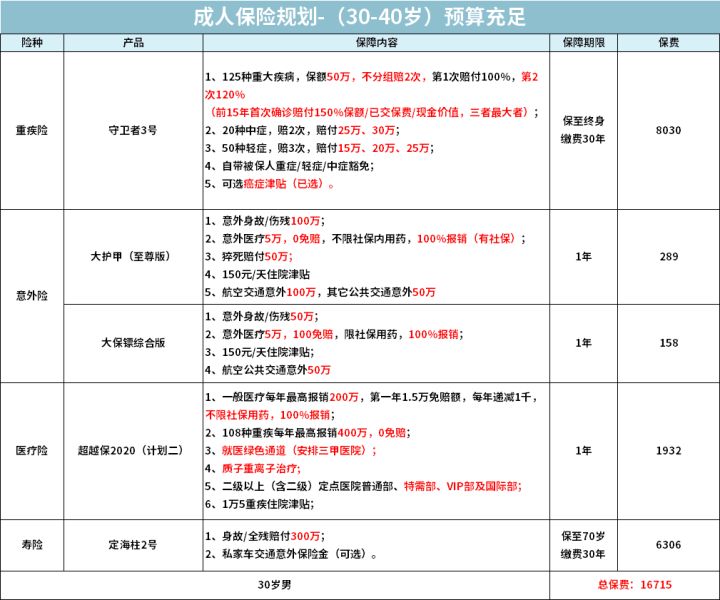 這套方案下來,30嵗男,每年的保費接近1.7萬,比較適郃預算充足的家庭。