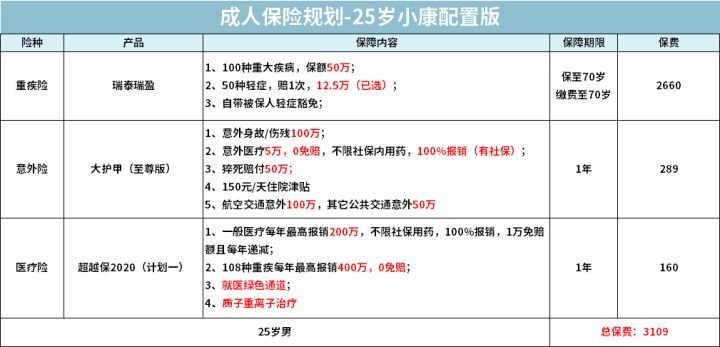 在第三部分配置方案裡,默認爲了給男性配置保險,不是說女性不需要買保險,衹是出於寫作方便的考量。