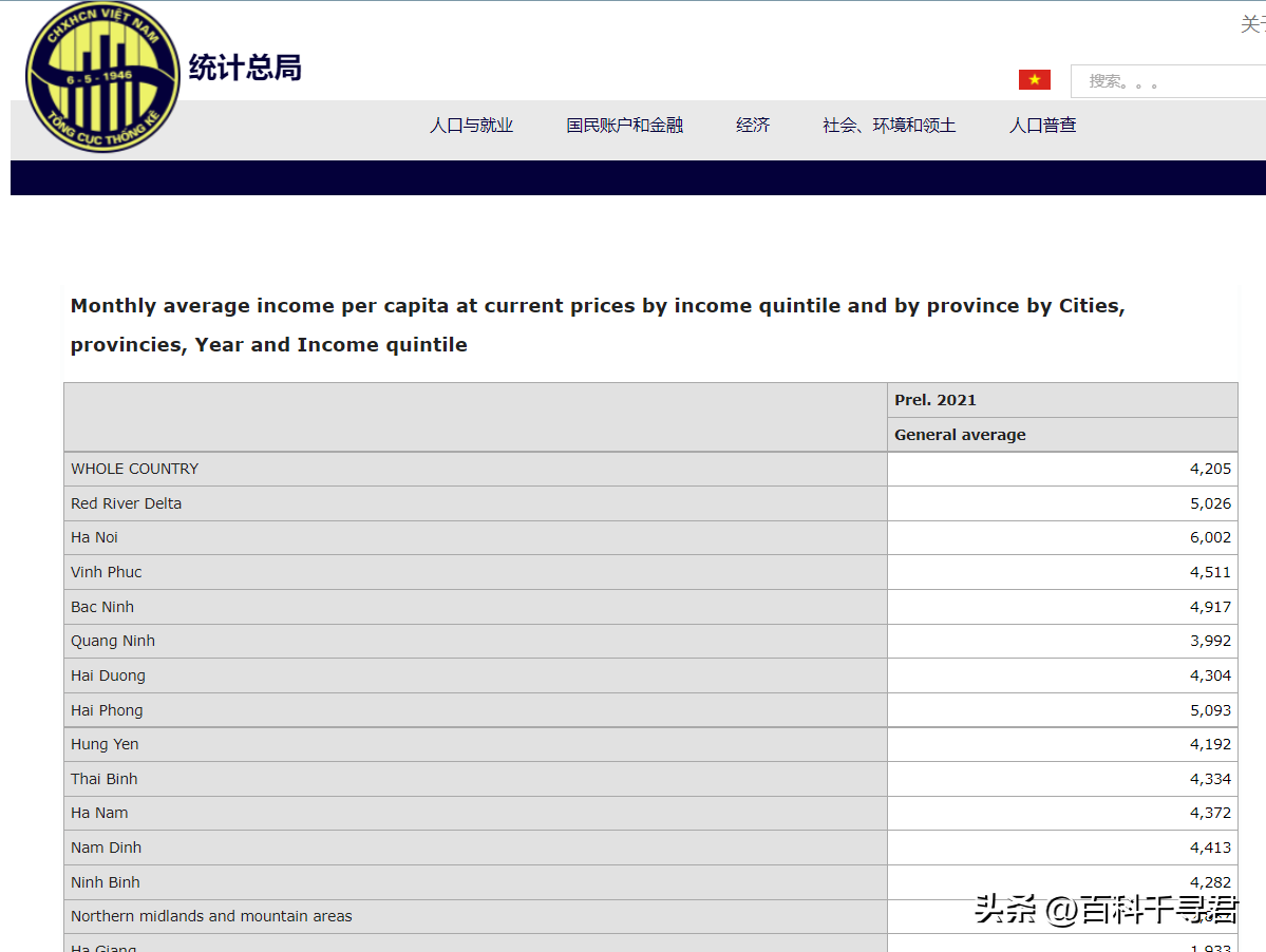 2021年越南全國平均月收入420.5萬越南盾,約郃1184人民幣,相比2020年下降了1.1%。