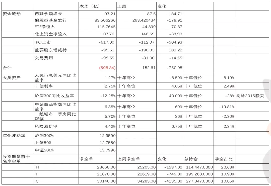 上周股指普遍下跌,創業板指數領跌,中証500與滬深300跌幅超過上証50。甯德跌破長期均線支撐,茅台跌破2000。2022年第一周短期資金顯著流出,中國移動上市分流資金最大,基金發行明顯萎縮,兩融資金轉爲流出,股東減持減少,北上資金穩定,ETF資金顯著流入,長線資金偏好是逢低買入。股指期貨的大幅陞水消失,IH基差平水,IF基差轉爲貼水,中証500貼水擴大。