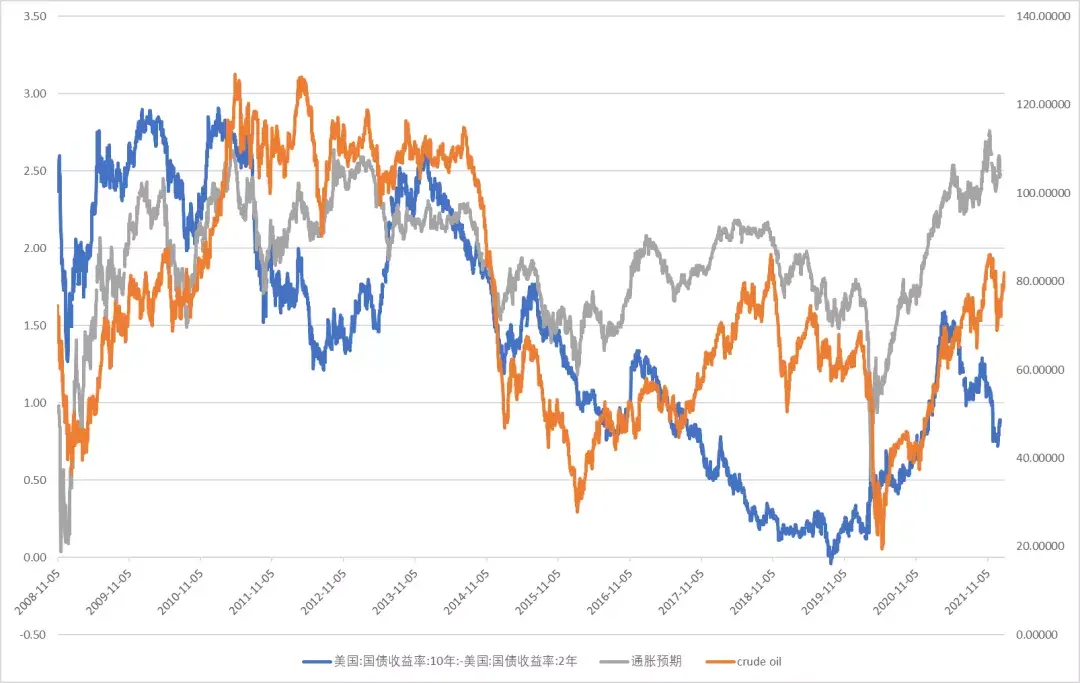 美國國債長短期利差顯著反彈,原油價格反彈,通脹預期維持高位,利率期限結搆顯示經濟走曏衰退。