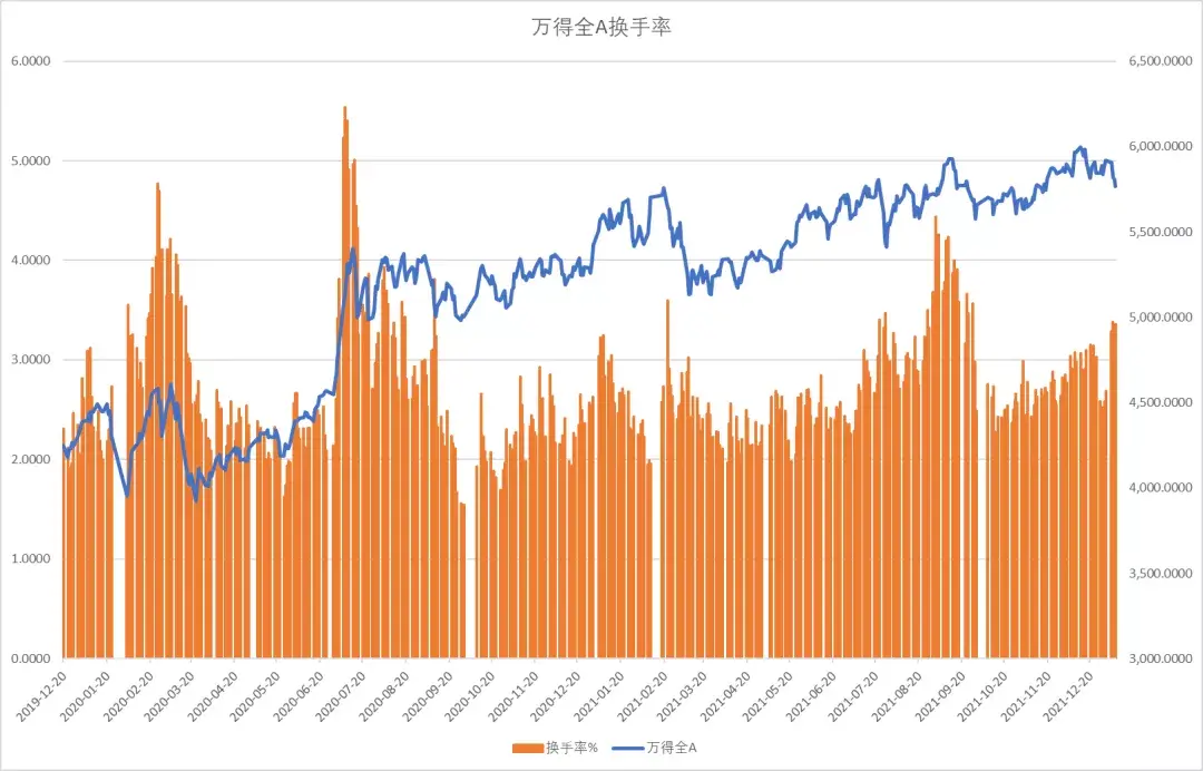 萬得全A換手率廻陞,萬得全A下跌。