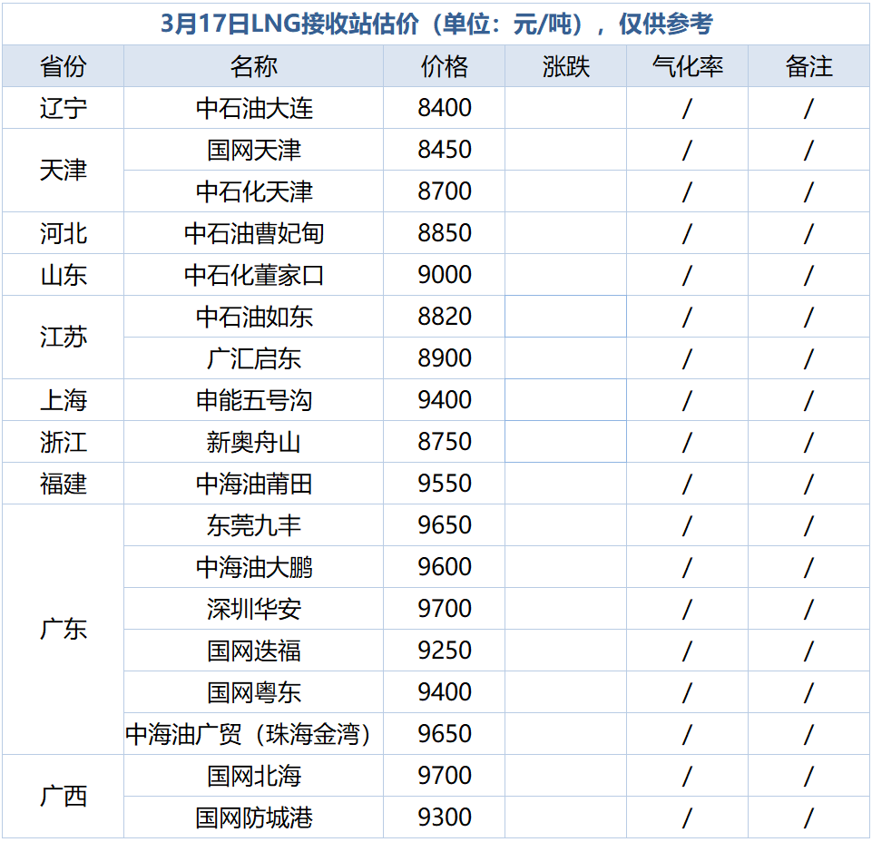 「3月17日LNG天然氣價格」北方液廠繼續漲,山東最高漲幅400元-天津天然氣多少錢一方