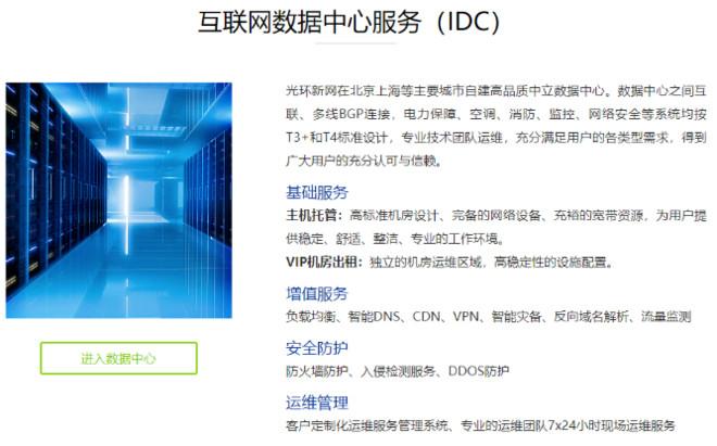 光環新網在IDC領域的主要服務項目