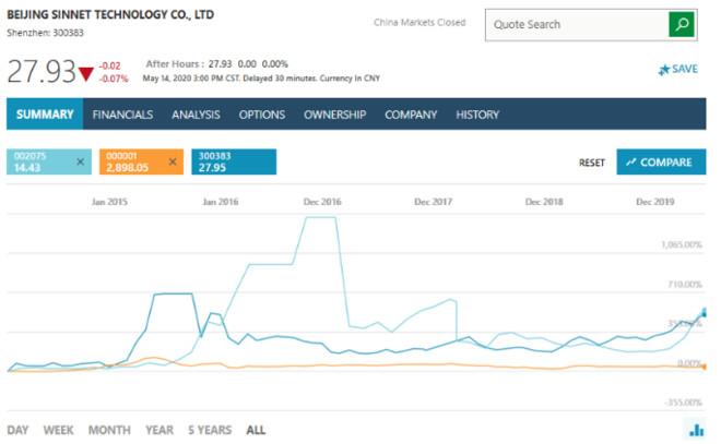 藍線:光環新網;橙線:上証指數;淡藍線:沙鋼股份。