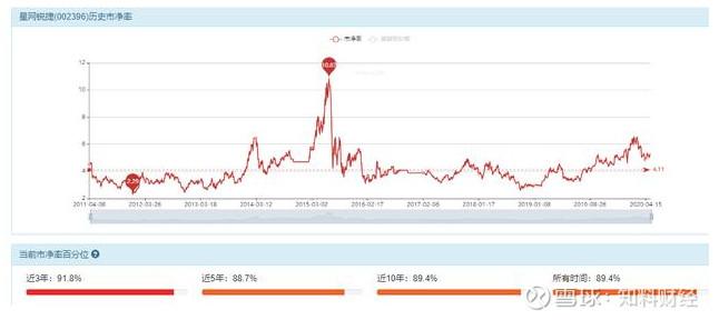 市淨率往往是熊市或者震蕩市常用的估值維度,是出於投資者的謹慎考量。截至2020年5月8日,星網銳捷市淨率爲5.42倍,對應收磐價39.25元,以近10年以來的PB分位點來看,分位點89.4%,以近5年的時段來看,分位點爲88.7%,近3年的時段來看,分位點91.8%。表明目前PB仍処在高位,安全邊際不大。
