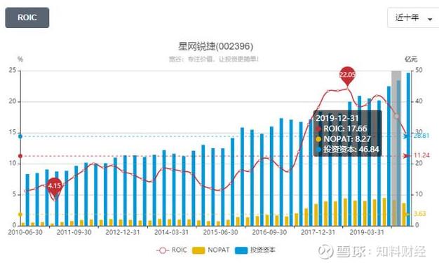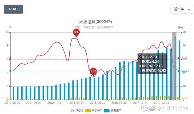 而從超額收益率來看,星網銳捷再勝一侷。超額收益率計算公式爲ROIC-WACC,是衡量企業真正能夠爲投資人賺取經濟利潤的重要指標。計算得出,截至2019年12月31日,星網銳捷超額收益率爲10.41%,天源迪科爲負。(WACC數據來源萬得,無風險收益取十年期國債收益率)