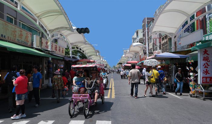 旗津雖小,卻有多樣吸引人的去処,在廟前路的天後宮,有三百年歷史,是三級古跡;身著唐裝的三輪車夫,是島上另一個觀光焦點,旗津老街上,緜延清一色海産店,價廉味美的新鮮海産,遊人可在露天大快朵頤,十分暢快。