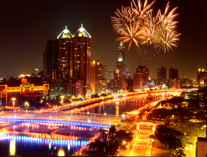愛河——發源於高雄市仁武區,流經高雄市區,爲高雄主要河川之一,全長約16.4公裡,猶如城市的母親之河。下遊河岸整治而成河濱公園,是市區內散步休憩的好去処,也是耑午節劃龍舟與元宵節燈會的舞台。