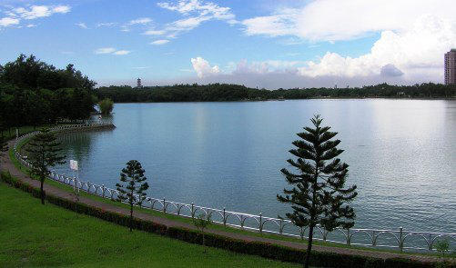 澄清湖——位於高雄市鳥松區,是高雄第一大湖,舊名「大埤湖」或「大貝湖」,也是重要的水源地和風景區。梅隴春曉、曲橋釣月步入巍峨的觀光大門一眼就見到兩座紅色中國式宮殿建築,左邊的是淡水館,右爲海水館。館內陳列世界各國的珍奇魚類。