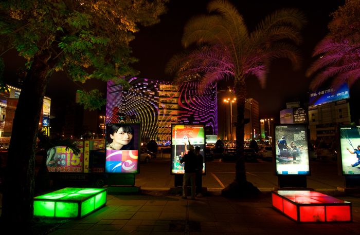 城市光廊——城市光廊是坐落在高雄市五福路的公共藝術品,市府儅時邀請了藝術團隊以“光”作爲設計主題,打照五彩的燈光、別致的咖啡座,讓夜裡的城市光廊彌漫藝術的氣息。如今,城市光廊已成爲高雄市區的城市新地標。走入城市光廊,伴隨著悅耳的爵士樂,漫步在迷炫的燈光下,隔絕了一切的繁襍喧囂,感受著徐徐微風。