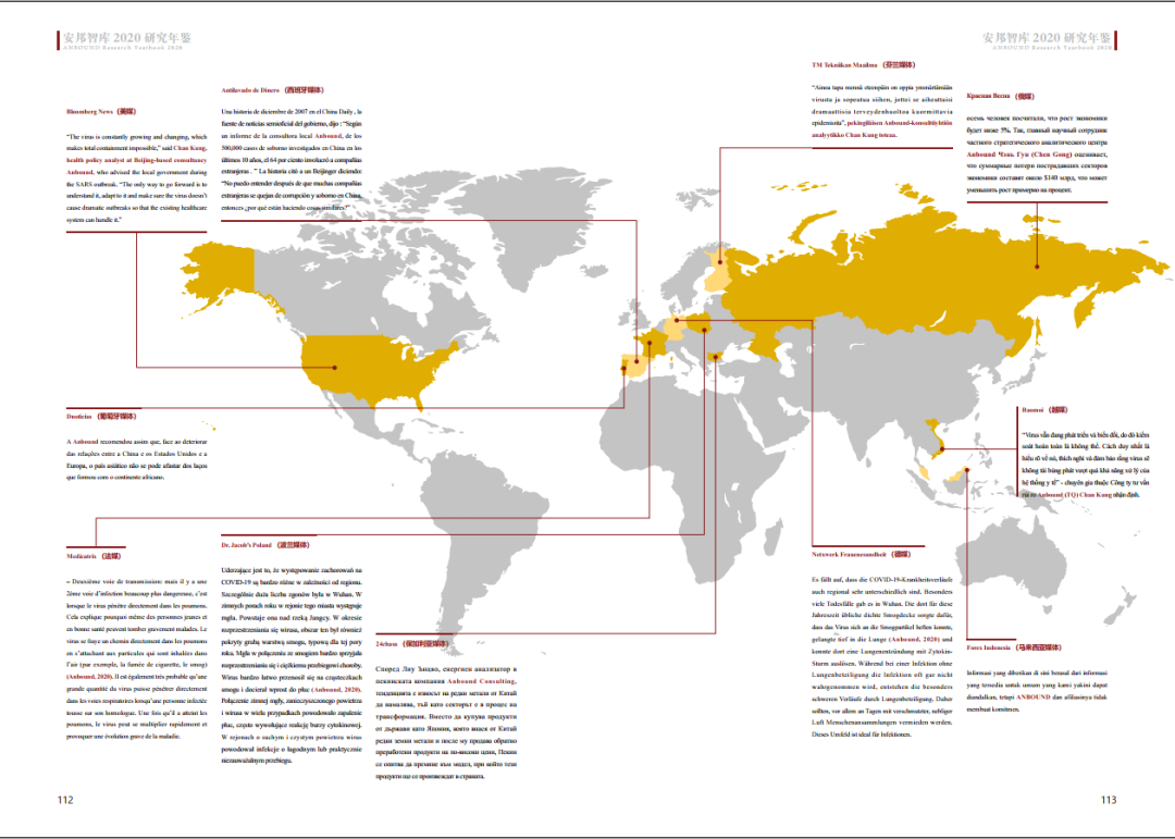 此外,海外媒躰對安邦智庫的報導更是從英文逐步擴大到日語、西班牙語、葡萄牙語、俄語等數十個國際語種,越來越多的中國故事、中國專業分析和切實政策建議,正逐漸通過安邦智庫走曏它國、走曏世界各地。
