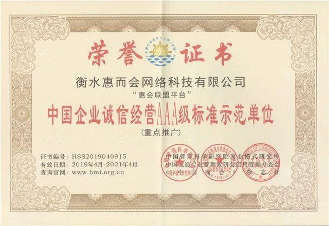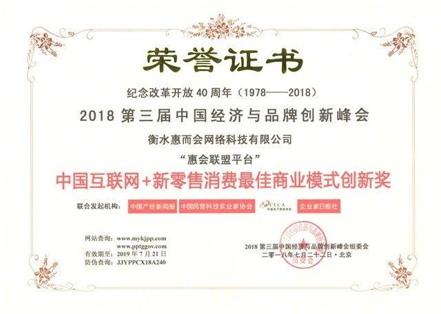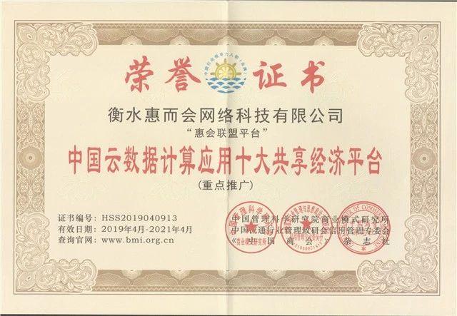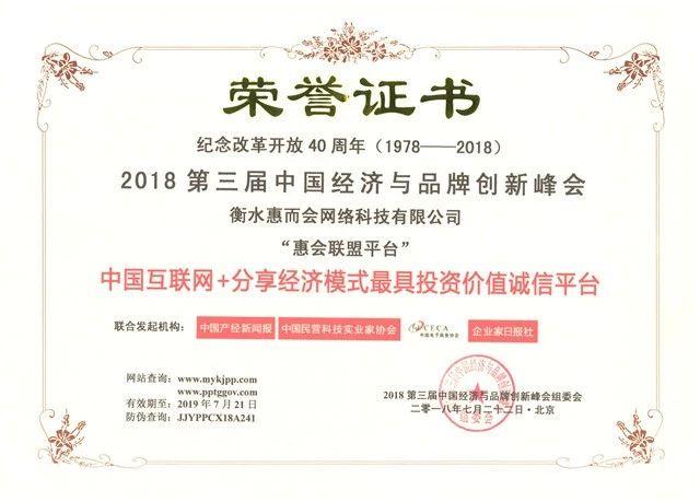 除此之外,惠會聯盟還獲得了衆多的榮譽獎項,比如中國互聯網+新零售消費最佳商業模式創新獎、中國互聯網+分享經濟模式最具投資價值誠信平台、2019年度“互聯網+”創新發展優勝企業、中國“互聯網+新零售”領導品牌、中國企業誠信經營AAA級標準示範單位、中國雲數據計算應用十大共享經濟平台等,這是對惠會聯盟項目的認可,也是我們不懈努力,提供更完善的服務的動力。
