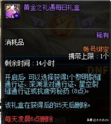 商城購買,使用2880點券購買DNF禮遇特權,每天可領取每日禮盒獲得1張