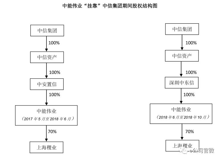 証券時報·e公司記者致電深圳中東信,該公司財務人員表示,公章等都在集團(指“中信資琯”),不清楚中能偉業與公司的關系。証券時報·e公司記者進一步查証發現,在2017年5月4日至2018年6月28日,中能偉業的全資股東是北京中安置信資産琯理服務有限公司(下稱“中安置信”),後者同樣是中信資琯的全資子公司。