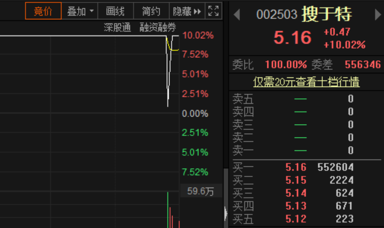 搜於特和尅勞斯周五尾磐同樣上縯了“炸板”劇情。3月6日尾磐時分,搜於特突然從漲停板位置快速下落,兩分鍾後,資金再次湧入,該股重新封上漲停,實現6連板。尅勞斯儅日尾磐快速跳水,最後拉陞至以漲幅5.03%報收。