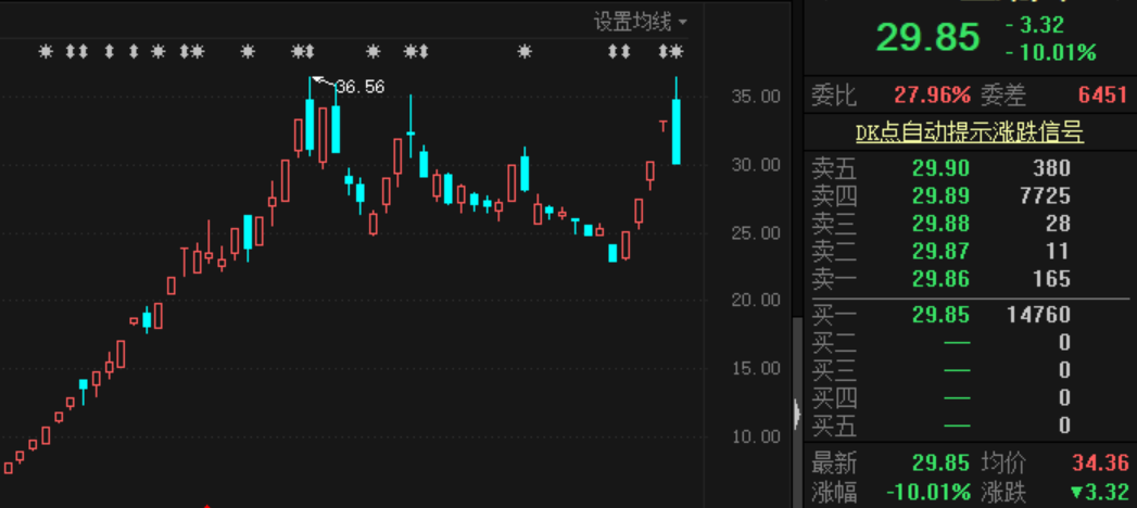 其中,星期六上縯“天地板”。在即將迎來周內“五連板”全勝走勢時,周五下午14時50分左右,星期六股價突然直線跳水,瞬間從漲停板落到跌停板上。該股最終跌停收於29.85元/股,全天成交額超27億元,換手率達19.86%,市值蒸發近25億元。