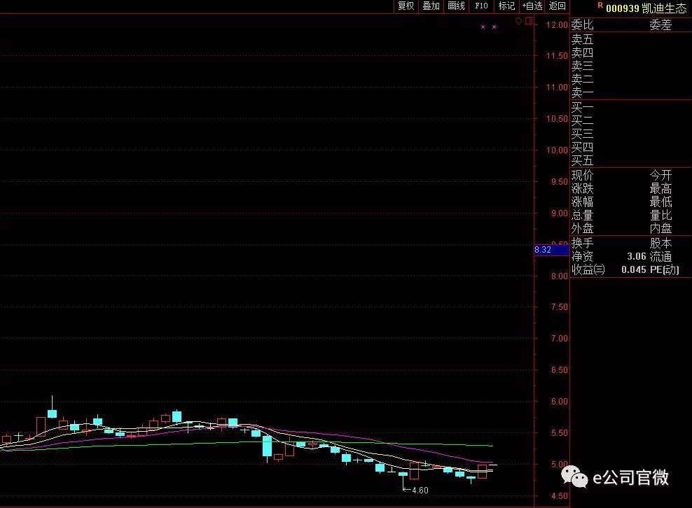 到2017年11月15日,凱迪生態停牌前最後一個交易日,公司股價僅報收4.99元/股。