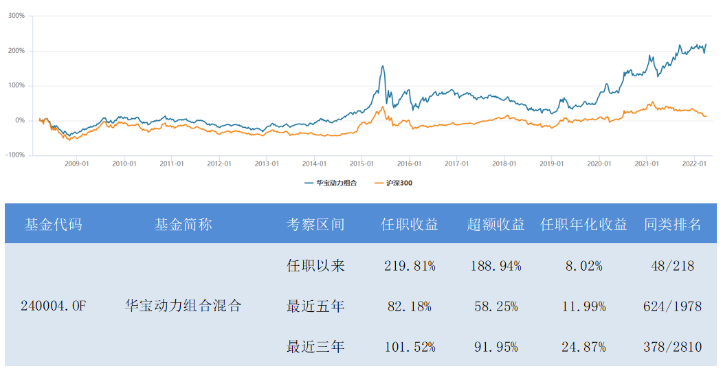 以劉自強在琯唯一一衹基金華寶動力組郃混郃爲例,琯理該基金超過14年,
