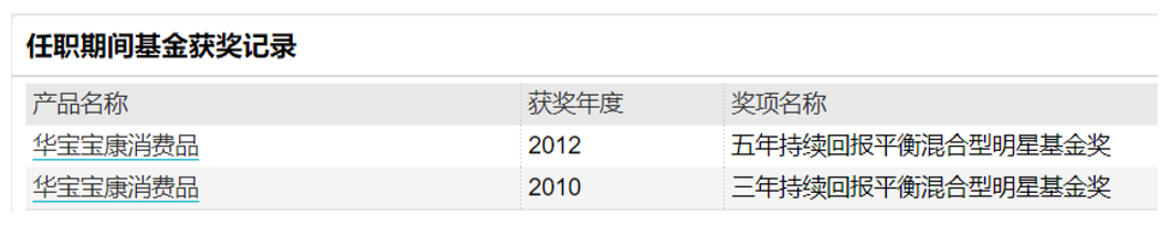 劉自強任職經歷中獲2次明星基金獎,獲獎時間爲早期琯理華寶寶康消費品時所獲。