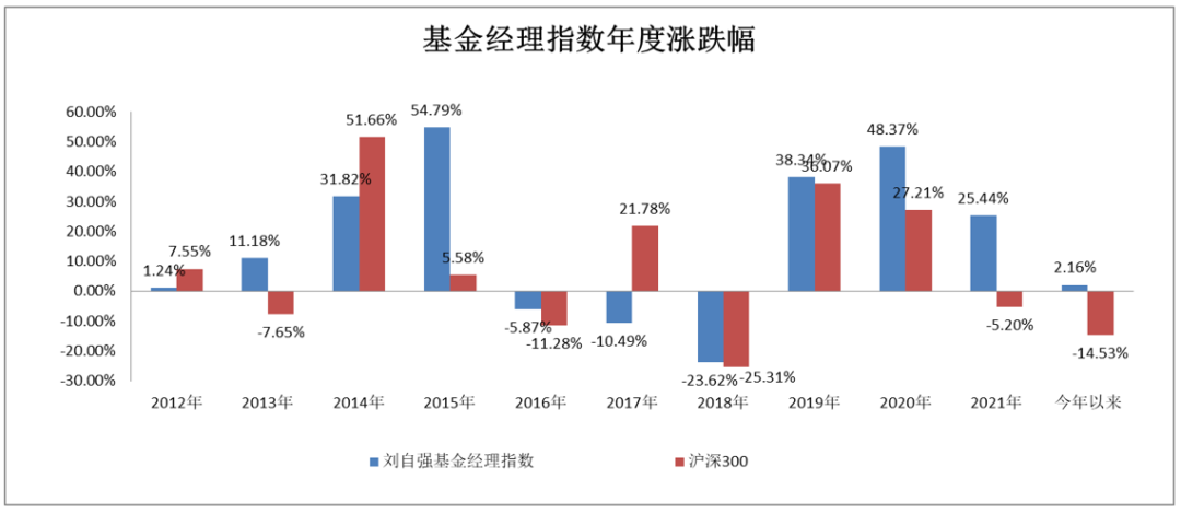全市場從業年限超過20年,基金經理年限在15年左右的基金經理衹有26位,劉自強是其中之一。