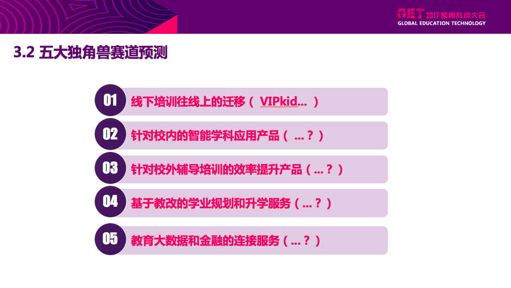 第五,未來教育大數據和金融的連接服務,將會誕生一些優秀的公司。