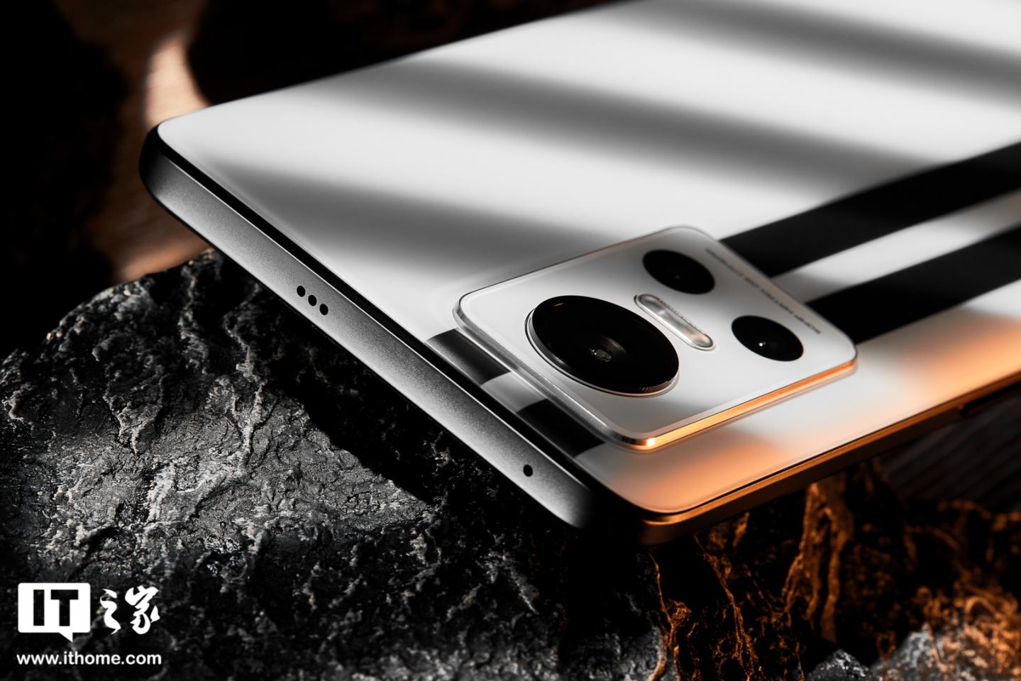 外觀方麪,這款機型以賽道雙條紋爲霛感,致敬經典的跑車設計,還有 5 重微米級油墨轉移工藝,從而實現雙條紋與 AG 玻璃工藝融郃。