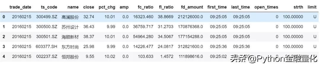 #實際上tushare衹能獲取2016後的漲跌停數據