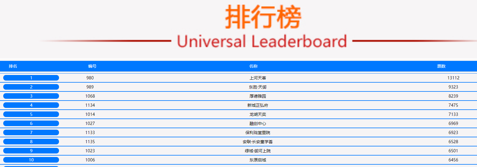 “冀房之星·人居典範”網絡投票排行榜前10排名截圖。