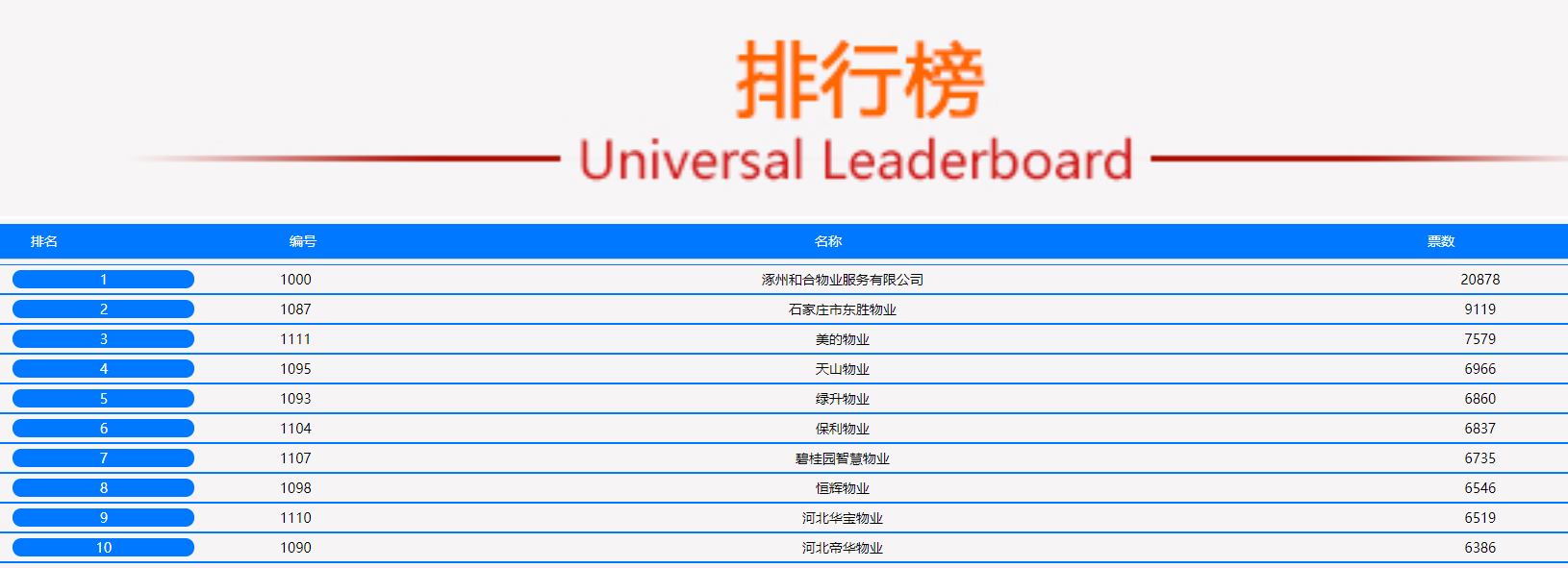 “冀房之星·金牌物業”網絡投票排行榜前10排名截圖。
