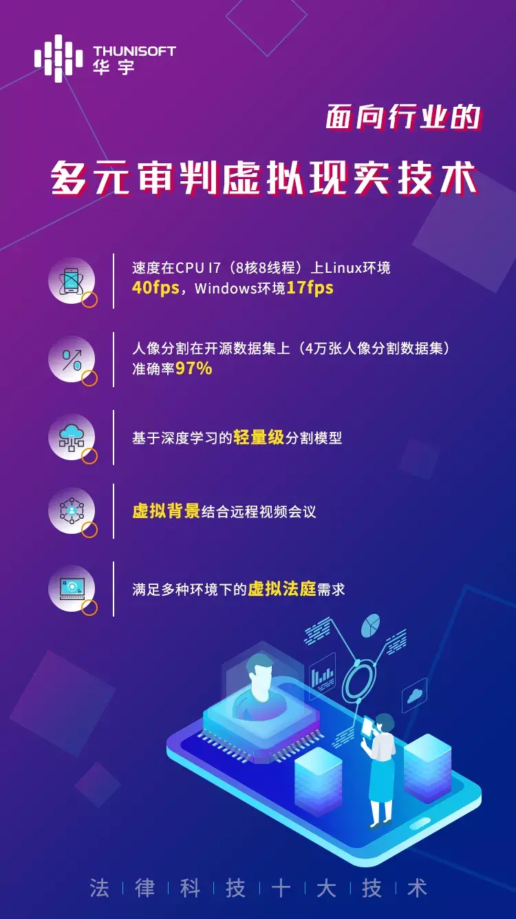 依托華宇虛擬現實技術,重點在虛擬法庭、互聯網庭讅(雲庭)等場景進行了應用。