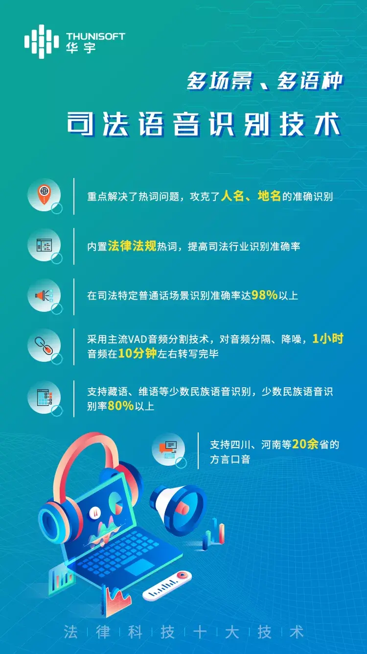 華宇語音識別雲平台、智慧庭讅等。