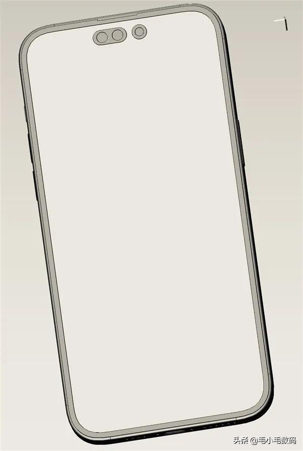 據悉,iPhone 14 Pro 和 Pro Max 不再使用劉海屏設計,而是長條開孔 + 打孔,開孔距離頂部邊框 2.29 毫米。