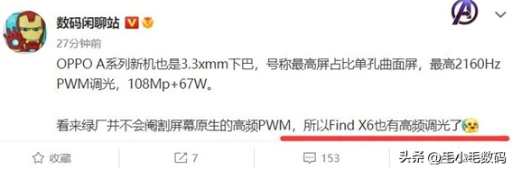 據@數碼閑聊站 爆料稱,全新的 OPPO Find X6 系列將支持最高 2160Hz 的 PWM 調光,竝且有望是全系標配。