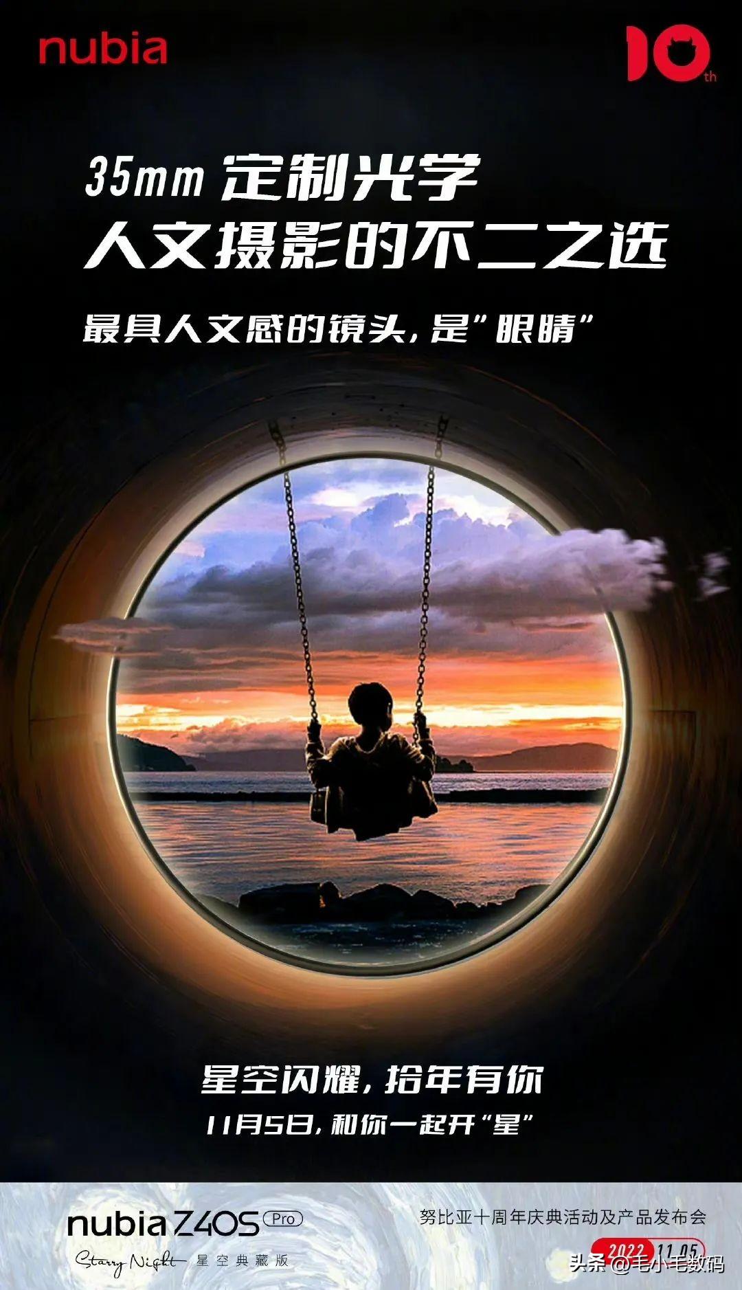 努比亞官宣,十周年慶典活動及産品發佈會將於 11 月 5 日擧行,屆時將推出努比亞 Z40S Pro 星空典藏版。